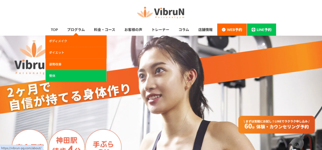 VIBRUN神田店は、プライベートな環境でのトレーニングと効率を重視したプログラムを提供する『高品質・専門性モデル』のジムです。