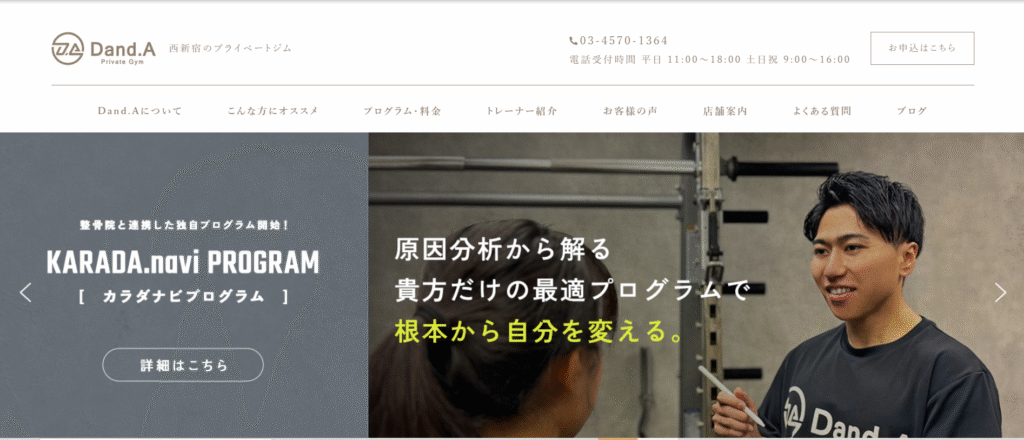 また、Dand.A 西新宿店のように整骨院と連携し、科学的な知見に基づいて身体の歪みを考慮したトレーニングを行うジムもあります。