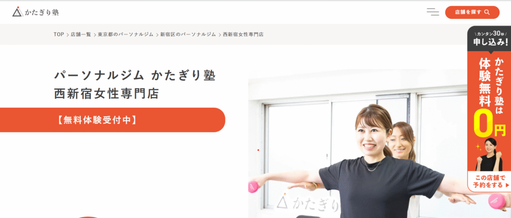 『かたぎり塾 西新宿女性専門店』は、女性の「健康美」を追求したトレーニングを提供しているジムです。
