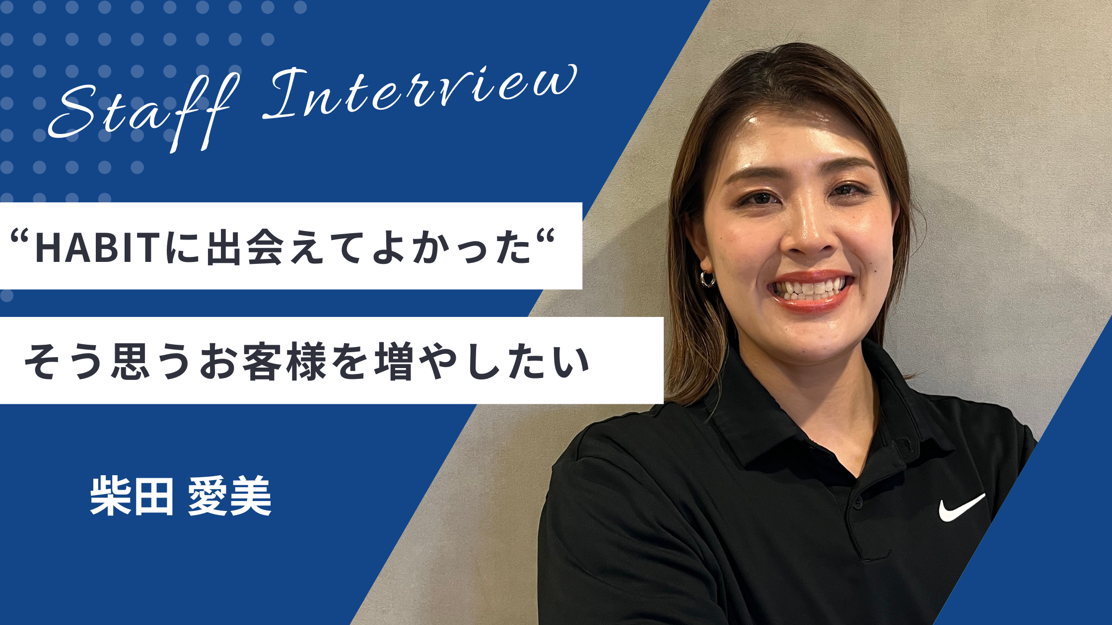 柴田愛美です。高校卒業後に地元の銀行に就職し5年間勤めていました。自身のトレーニング経験からトレーナーを目指し上京したいという思いでHABITに就職。現在は6年目に突入し、責任ある立場として恵比寿店で勤務しています。