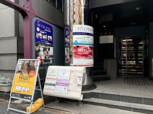 セブンイレブン前の交差点を渡ると、銀色のビルが見えてきます。こちらが当ジムの入る建物です。