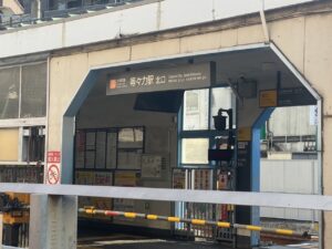 改札を出たら、目の前の大きな通り(商店や人通りのある方向)へ向かって直進します。